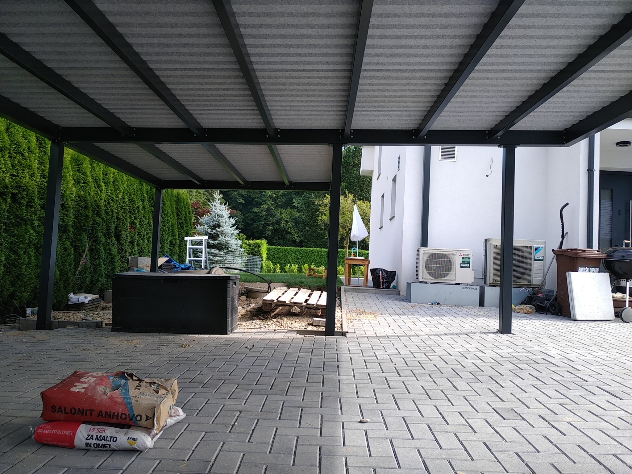 Nadstrešek za avtomobile, nadstrešek za pokritje terase, nadstrešek za vhod, večji nadstreški.