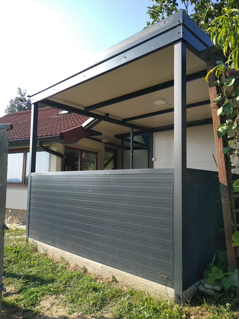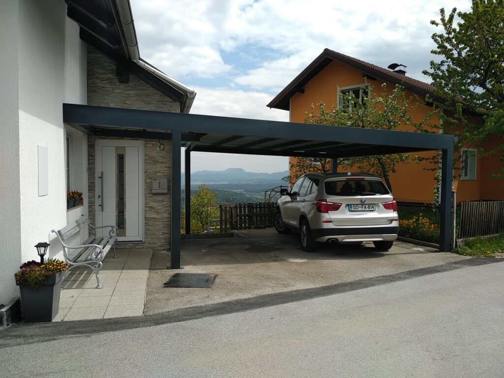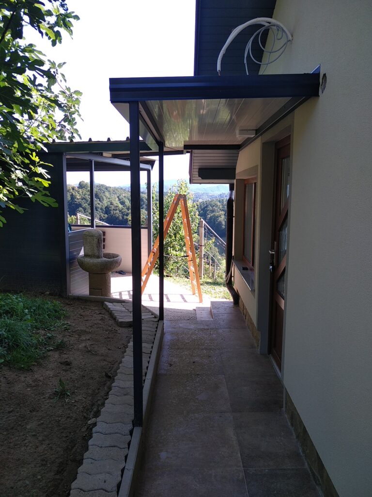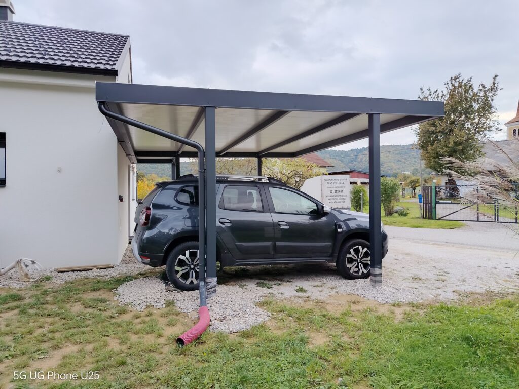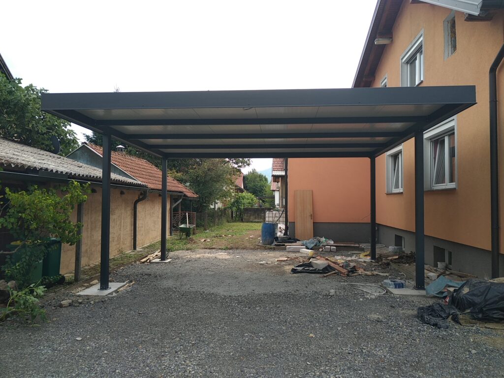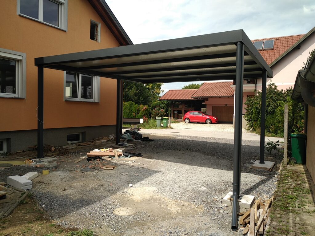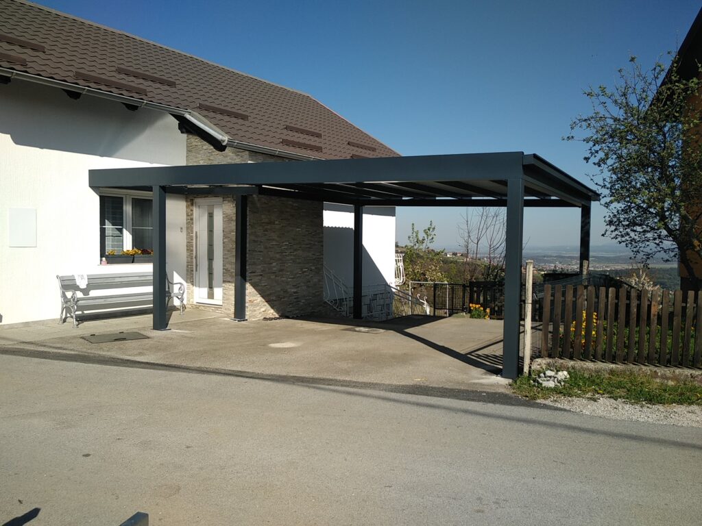 Nadstrešek za avtomobile, nadstrešek za pokritje terase, nadstrešek za vhod, večji nadstrešek, nadstrešek s stebri, enostransko vpeti nadstrešek,