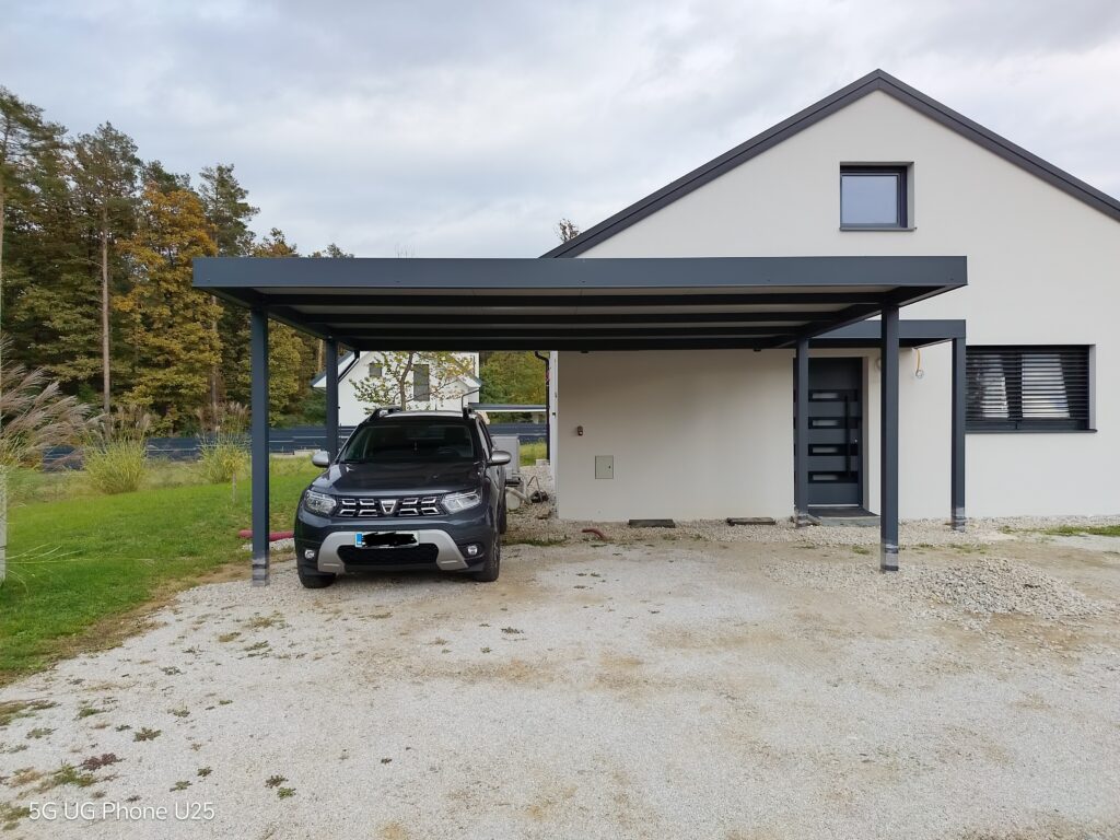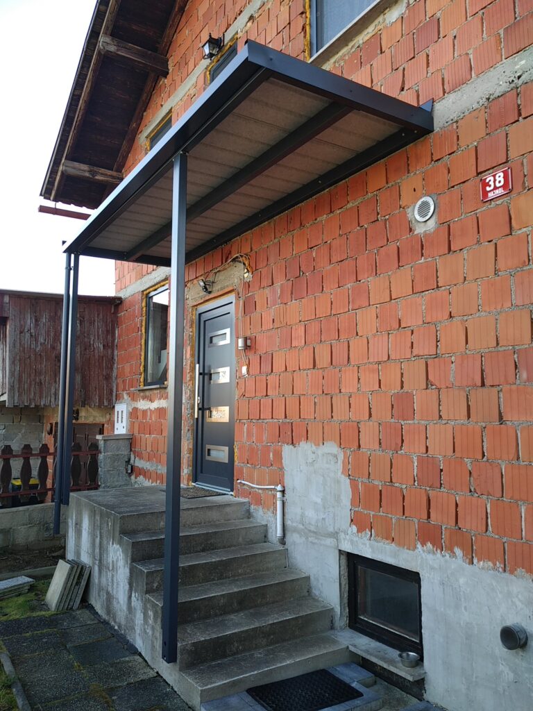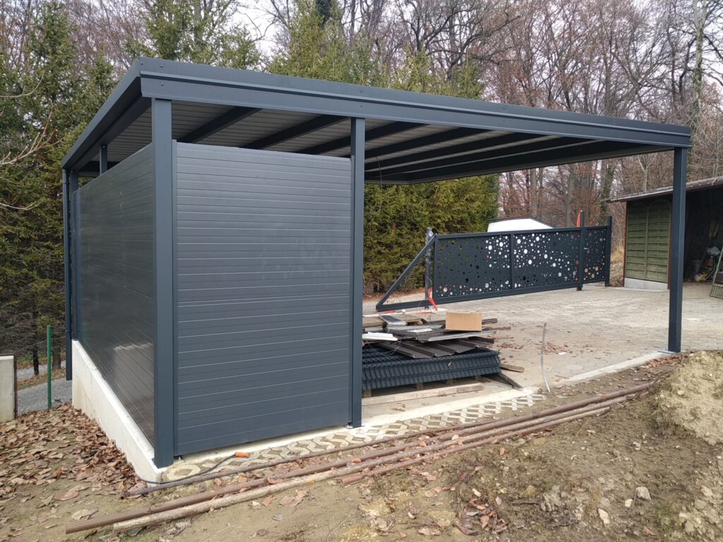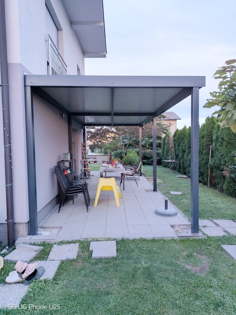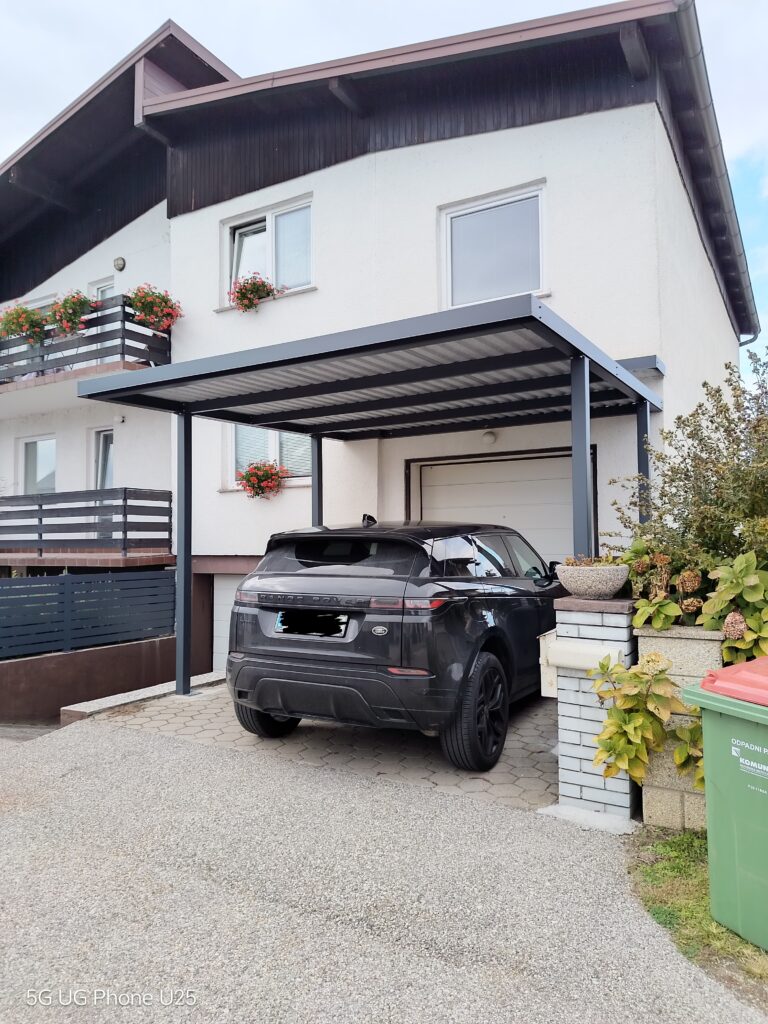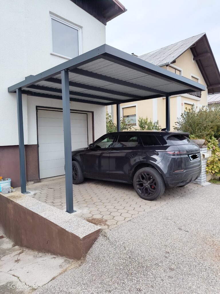 Nadstrešek za avtomobile, nadstrešek za pokritje terase, nadstrešek za vhod, večji nadstrešek, nadstrešek s stebri, enostransko vpeti nadstrešek,
