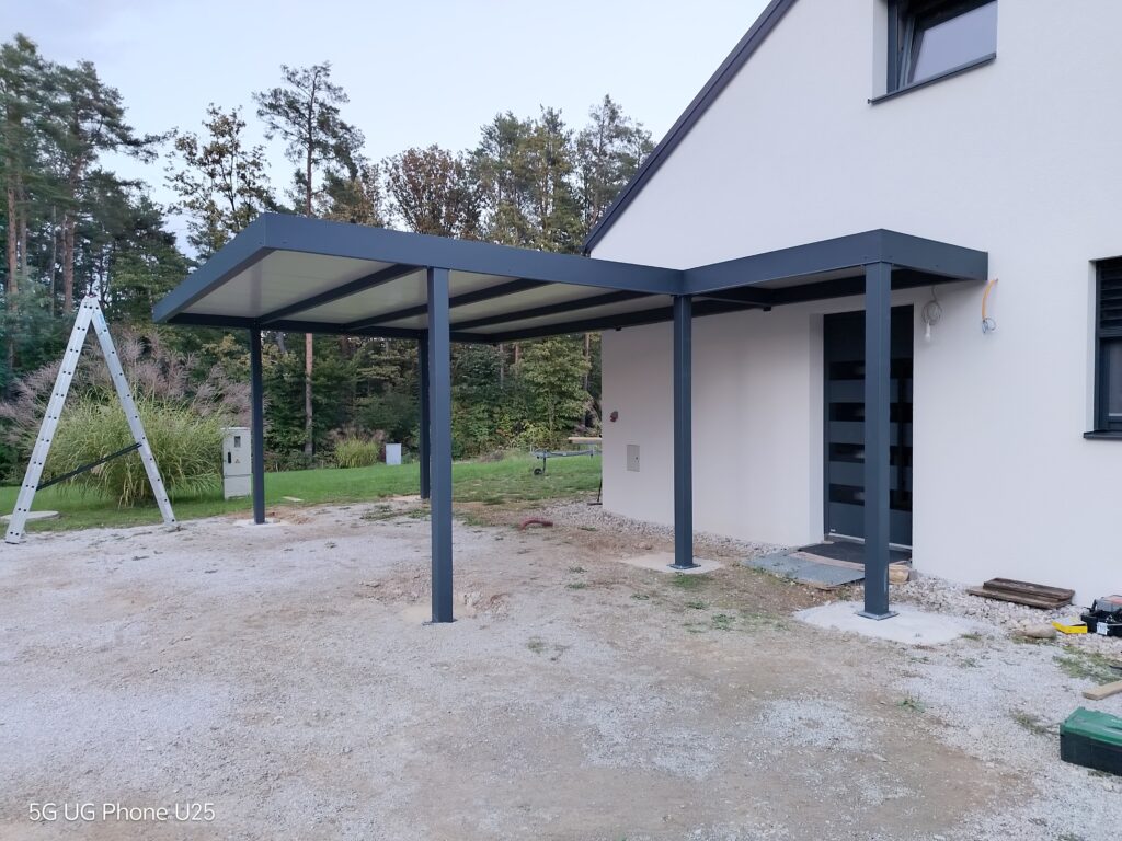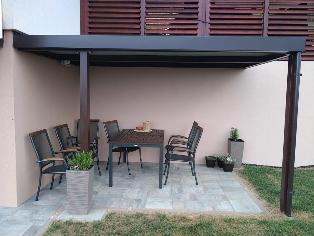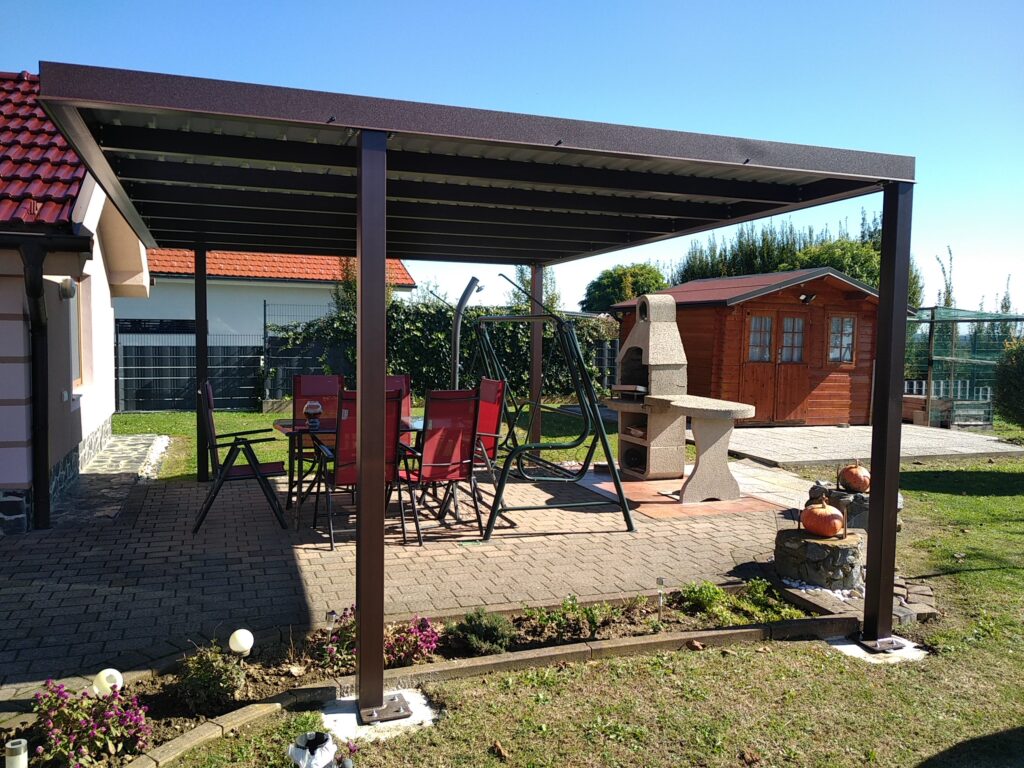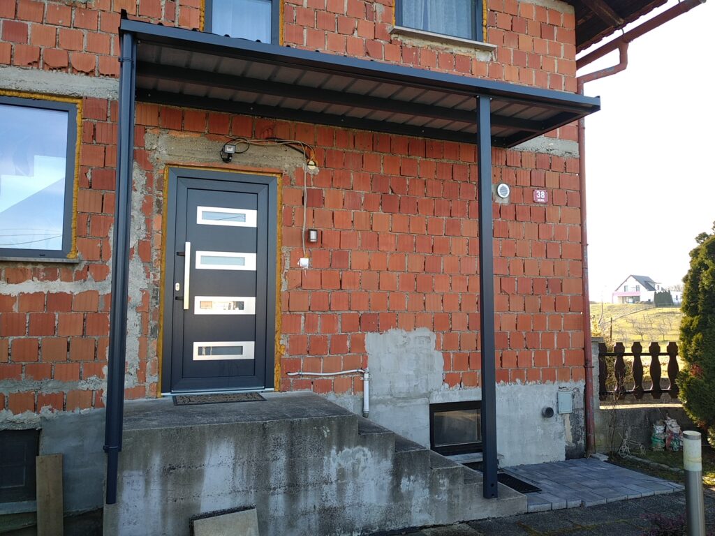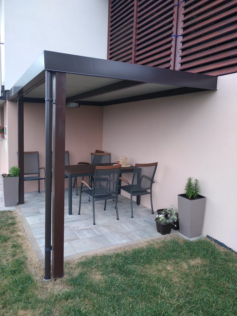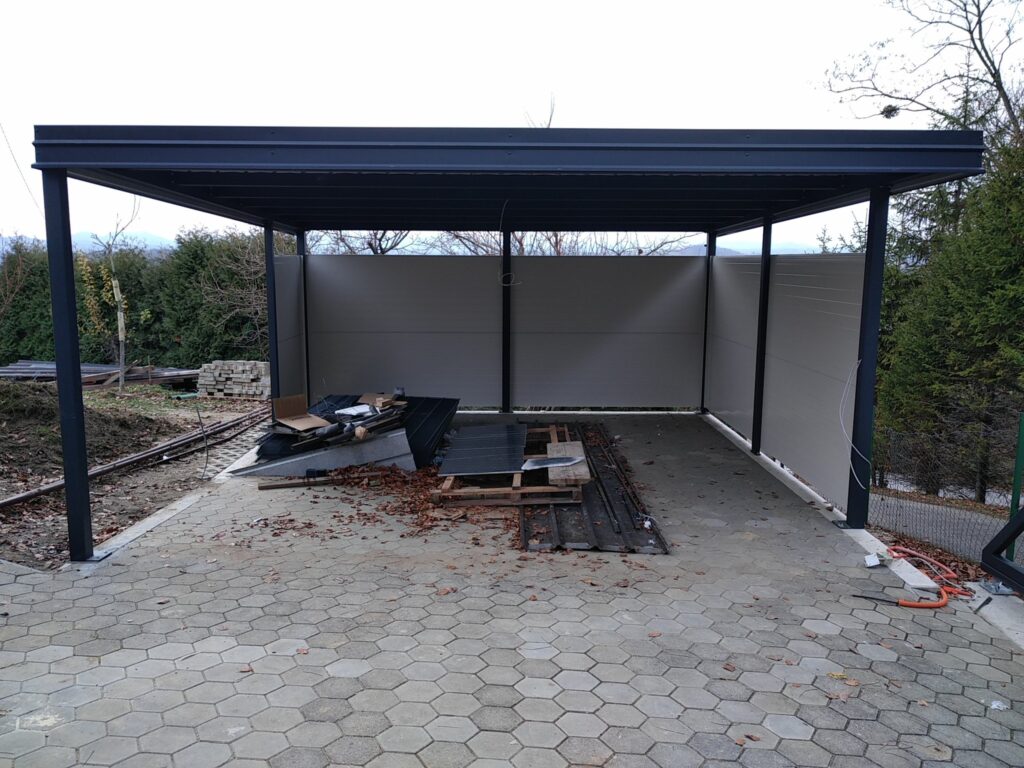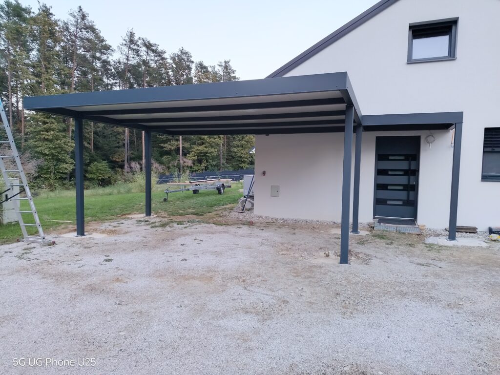 Nadstrešek za avtomobile, nadstrešek za pokritje terase, nadstrešek za vhod, večji nadstrešek, nadstrešek s stebri, enostransko vpeti nadstrešek,